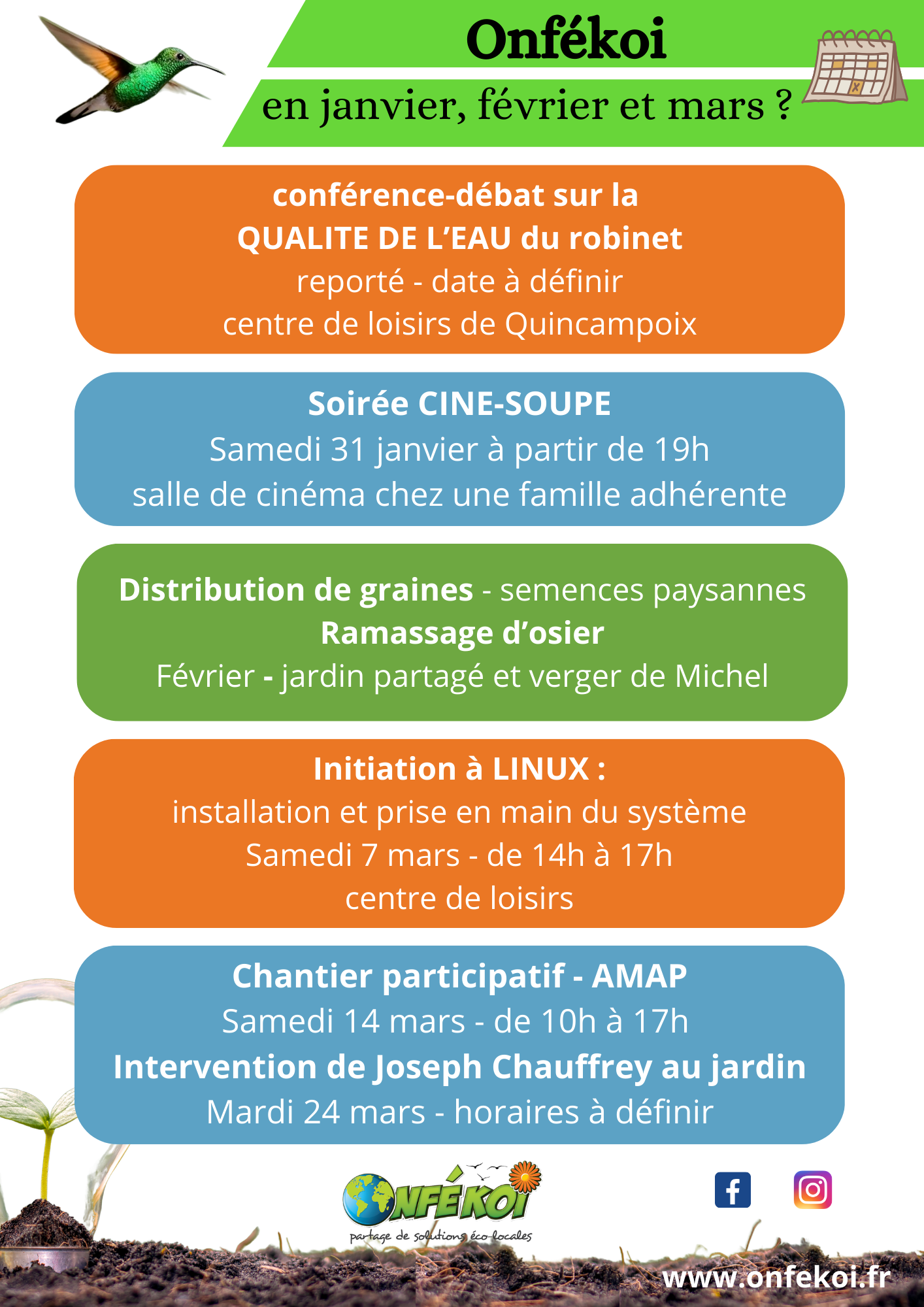 Cette association a pour but d'échanger des savoirs et des savoir-faire pour le développement de solutions écologiques tout en créant des liens entre les habitants de Quincampoix et alentours.